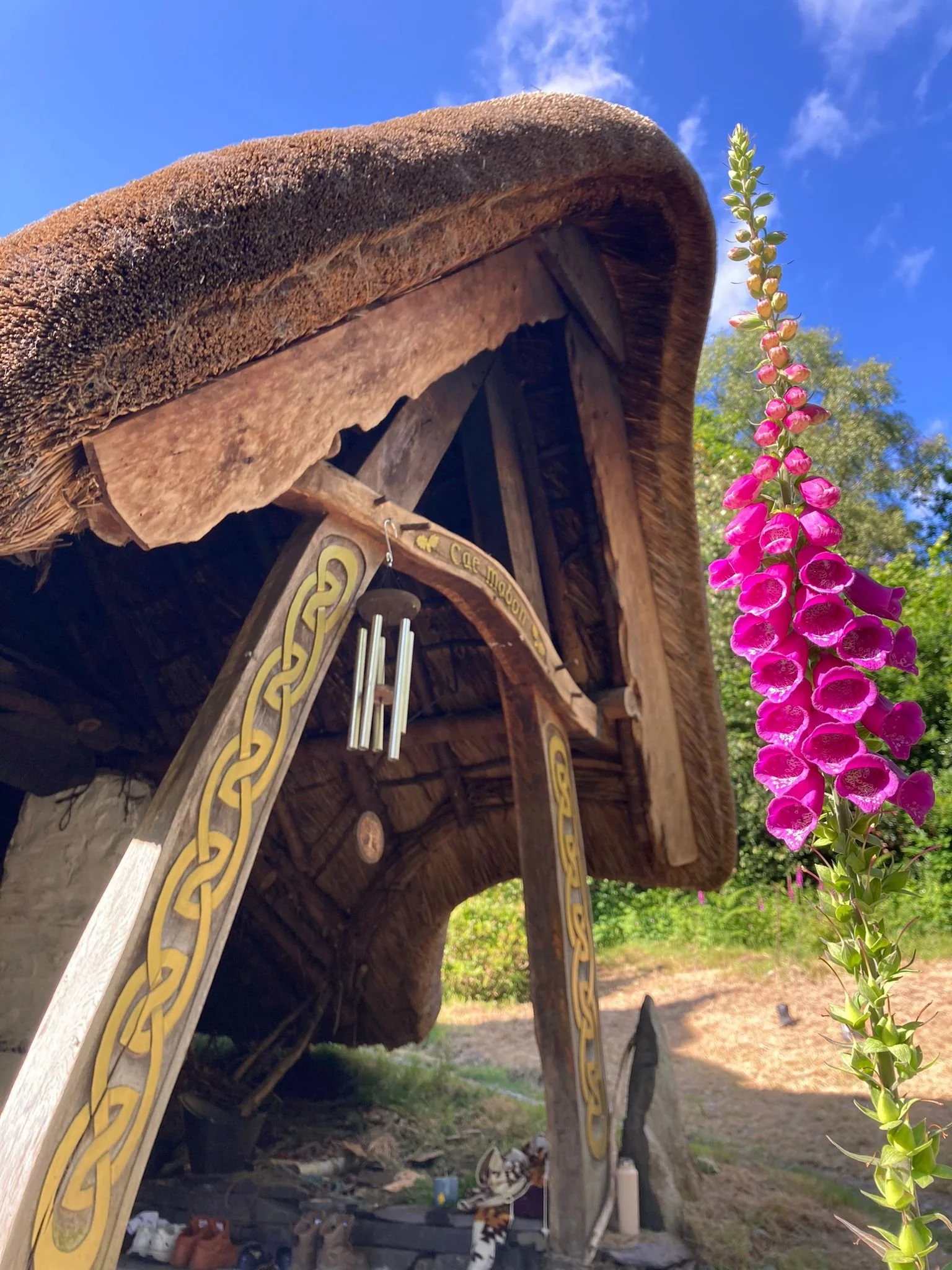 Cae Mabon is an exquisite space at the foothills of the Yr Wyddfa (Snowdon), on the edge of a lake, with a magnificent thatched Celtic Roundhouse at its heart, home to many convivial evenings of fireside story and song. Circling this hub-hearth is a family of seven elegant eco-build dwellings. There is a state-of-the-art composting loo, a shingled shower hut and wood-burning cedar hot tub (we like to cook like noodles in a bowl of soup in here)! We are so blessed to be able to offer something in this magical space.